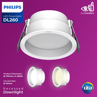 Đèn DL260 7W được thiết kế choá sâu, Lắp thật chìm để mang lại cảm giác dễ chịu khi nhìn.